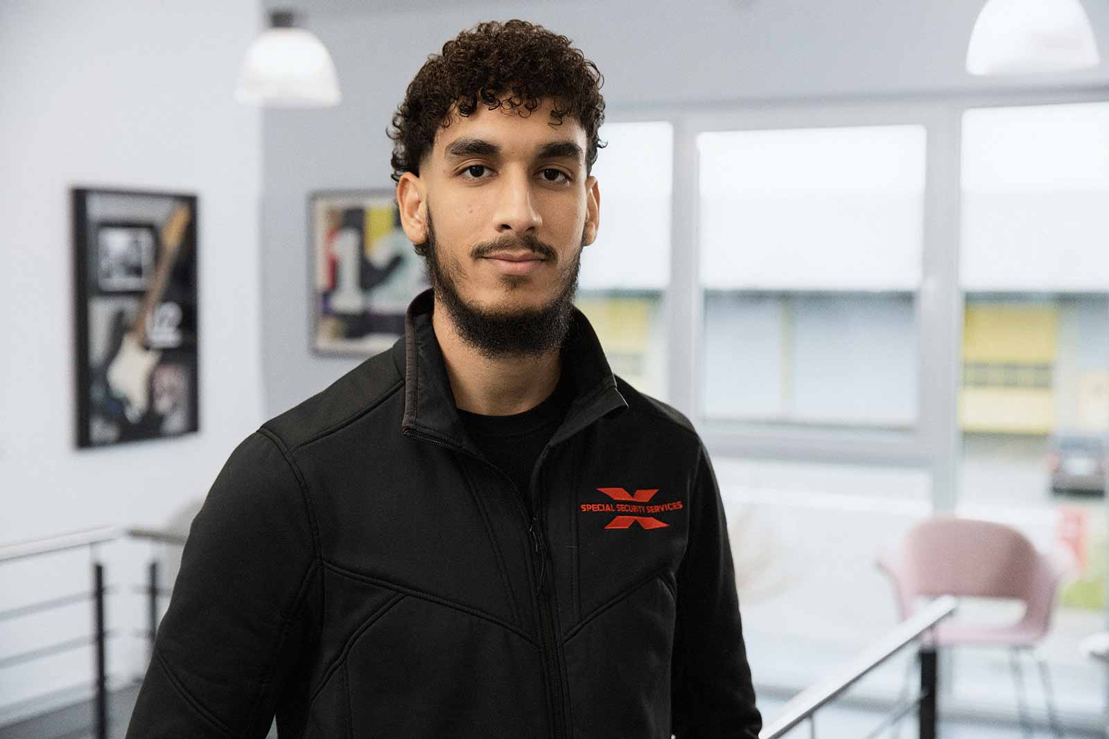 Drei Mitarbeiter von Special Security Services besprechen sich