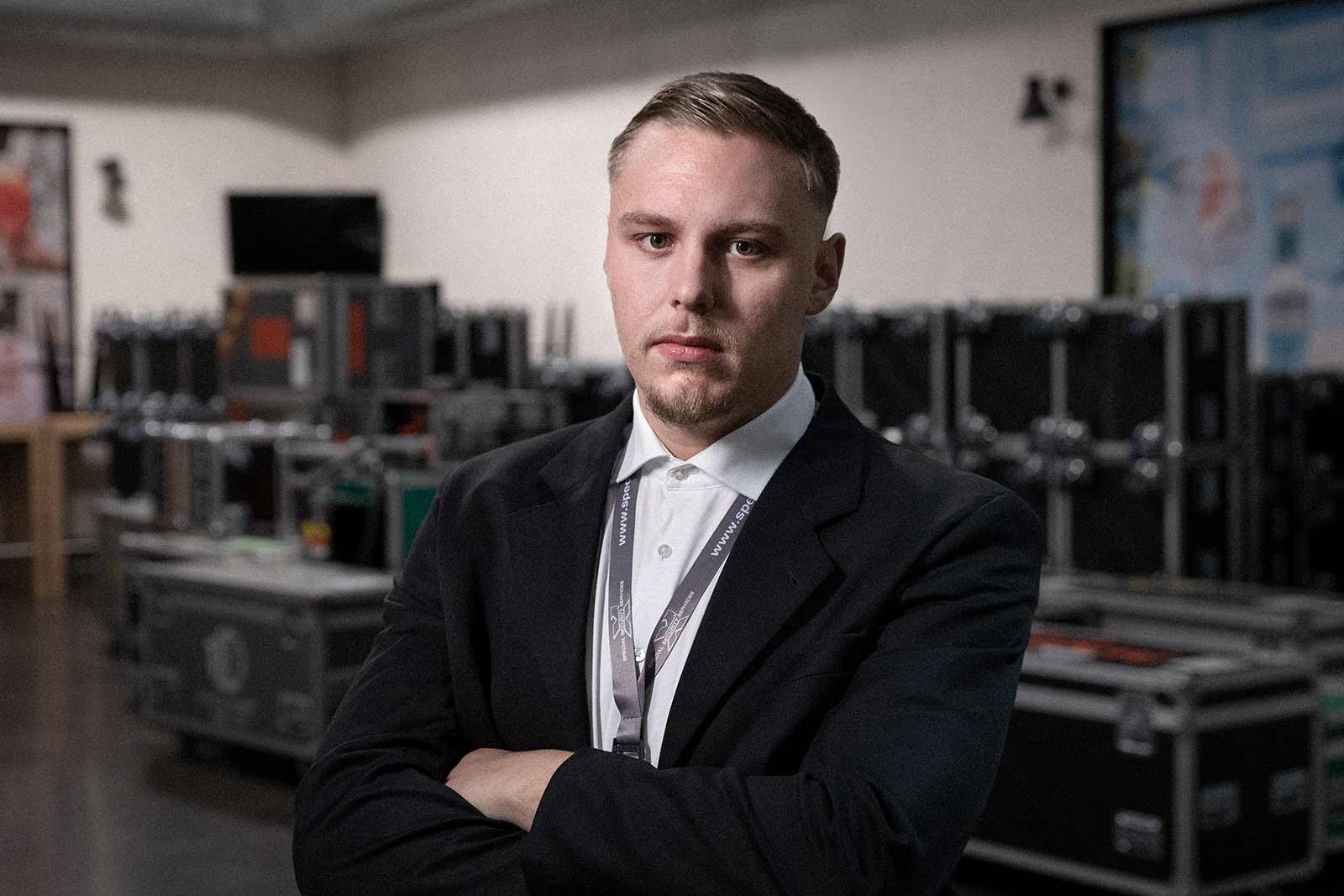 Ein Mitarbeiter von Special Security Services bei einem Vortrag